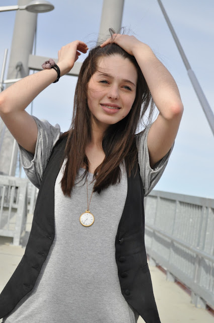 O kadangi mano guminiai yra labai ryškūs, norėjosi turėti ryškų akcentą, kuriuo patapo mano šalikas, kuris buvo ir visai kitokio rašto. Be to, kadangi jie gėlėti, sumaniau užsidėti gėlėtą šviesią suknelę. Ir štai kas išėjo bendrame fone: